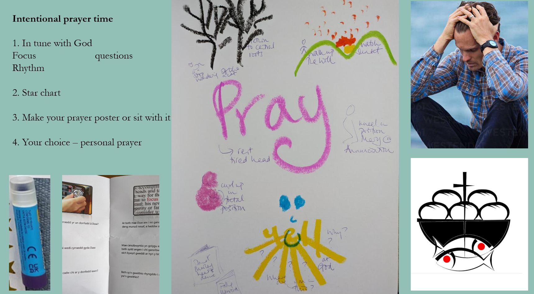 I was given the brief of a contemplative prayer evening for 30 adults, including youth. I decided to do a meditation on Life Events as the theme of the week was Story. This evolved through the week; one key element was using flowers from home, from the wild and a friend to make a garden to create a space to engage. It was a whole new process for me and God spoke very powerfully within it.